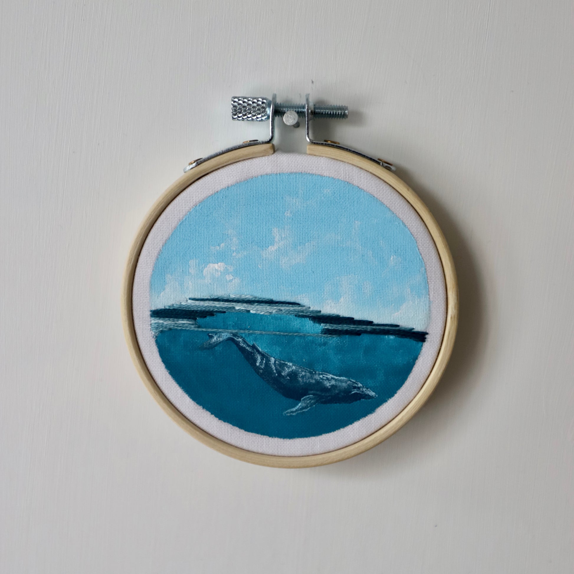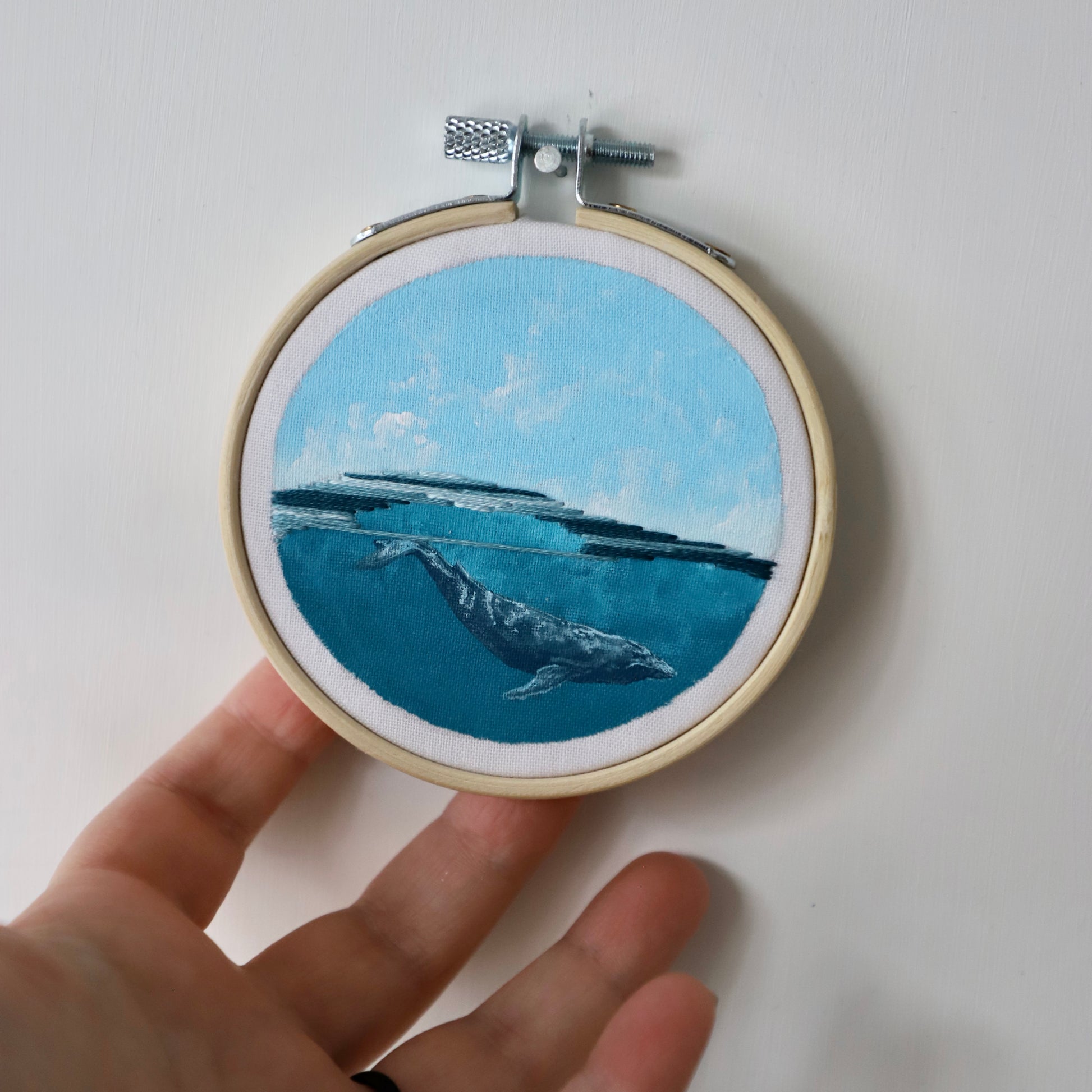 Made with acrylic paint and hand embroidery on two layers of cotton fabric.